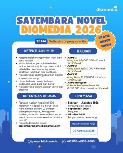 Proses kreatif penulisan sastra Indonesia dalam bentuk novel kembali diselenggarakan oleh Penerbit Diomedia. Tema tahun ini mengangkat “Setiap Kota Punya Cerita.” Harapannya sayembara penulisan novel ini bisa memberikan warna baru bagi perkembangan perbukuan di Indonesia